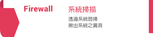 | 系統弱掃 | 網站弱掃 | 原碼掃描 | 滲透測試 | APT | 紅隊演練 | |