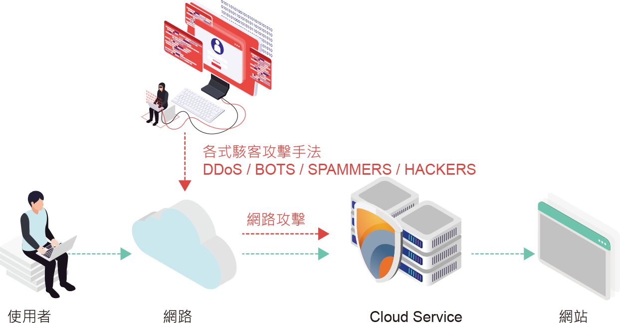 透過執行 SaaS ( Security-as-a-Service ) 解決方案,無論網站管理員功力厲害與否,WAF 能為網站伺服器提供保護,為網站程式避免掉許多威脅。透過檢測分析網站流量內容,確認是否符合或違反通訊協議、port 或 IP,避免網站程式被攻擊。WAF 能提供優化後的防禦服務,防禦DDoS 攻擊、XSS 跨站攻擊、SQL Injection、path traversal 以及其他網站攻擊技術。